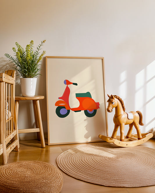 • Cuadro infantil ilustrado de moto retro geométrica roja
