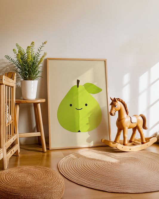 • Cuadro infantil ilustrado de pera verde sonriente