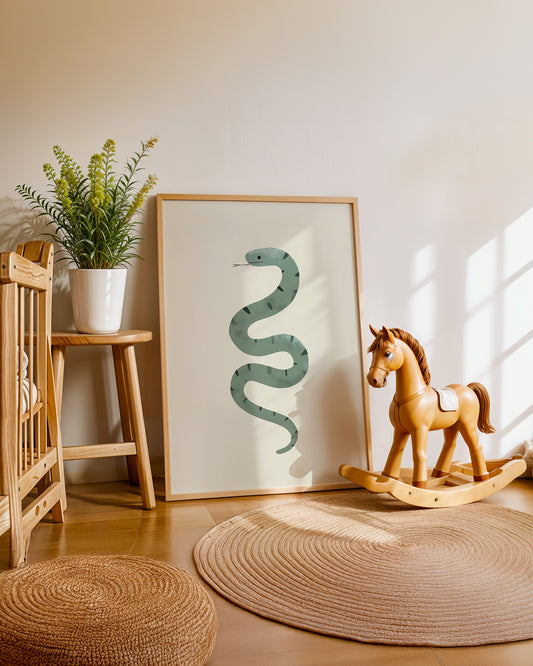 • Cuadro infantil ilustrado de serpiente verde decorativa